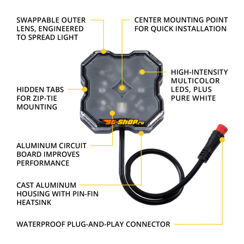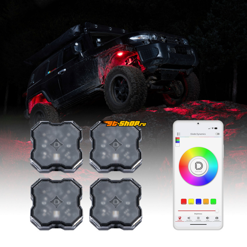 Diode Dynamics Stage Series SXS Rock Light Installer Kit - RGBW M8 w/Controller (4-pack)