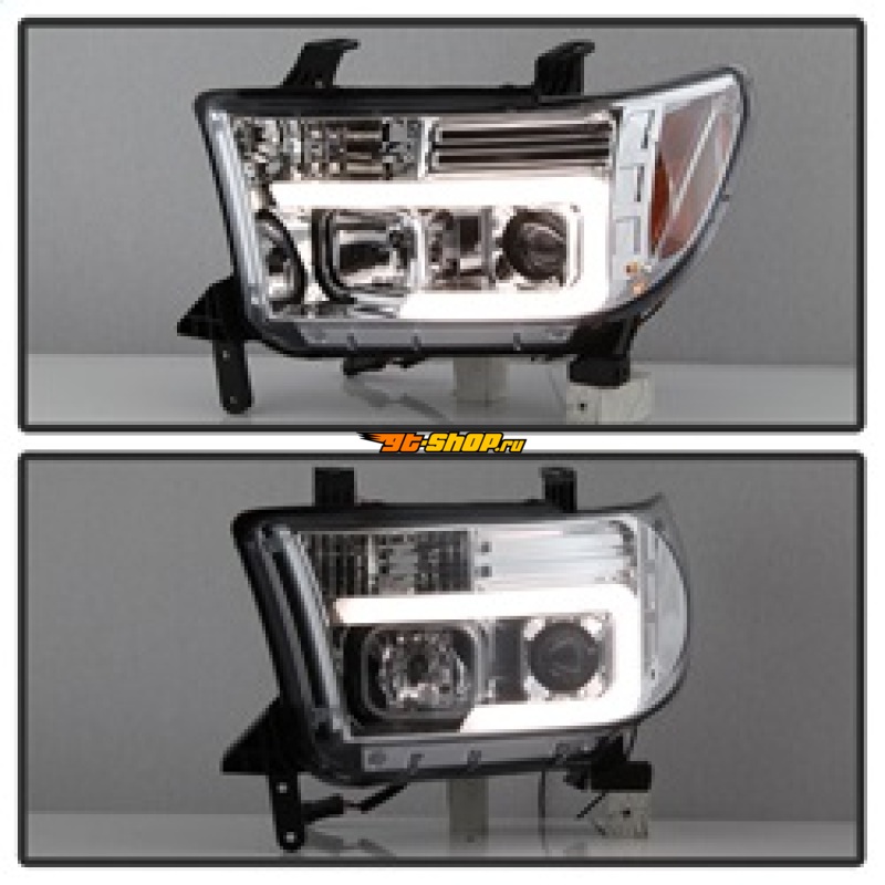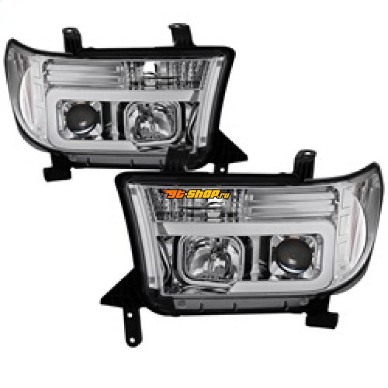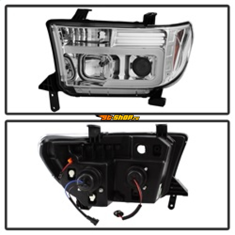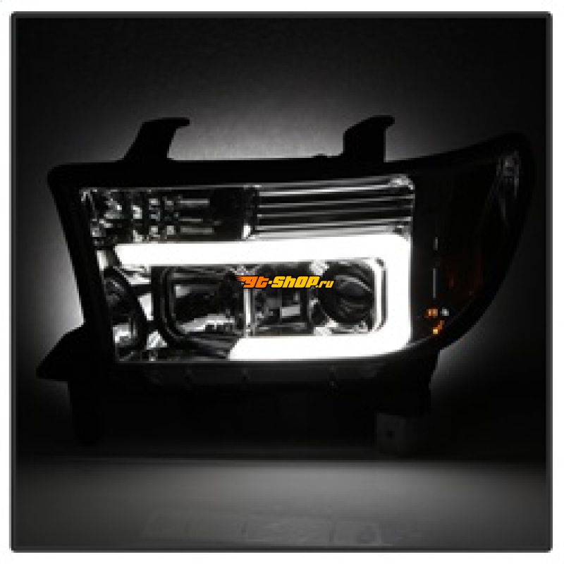 Spyder 07-13 Toyota Tundra V2 Light Bar DRL Projector Headlights - Chrome (PRO-YD-TTU07V2-LB-C)