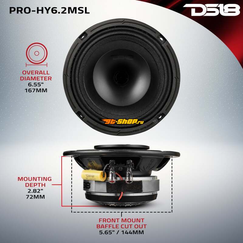 DS18 6.5in 150 Watts RMS 2 ohm Mid-Range Loudspeaker Shallow Grill Included