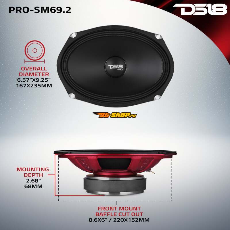 DS18 6x9in 250 Watts RMS 2 ohm Mid-Range Loudspeaker Shallow