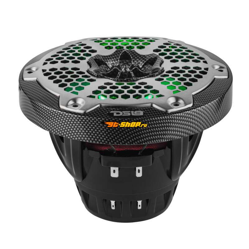 DS18 Hybrid Marine Speaker w/ Driver And RGB LED 6.5in 2-Way 250 Watts RMS 4 ohm Crbn Fiber w/ Cover