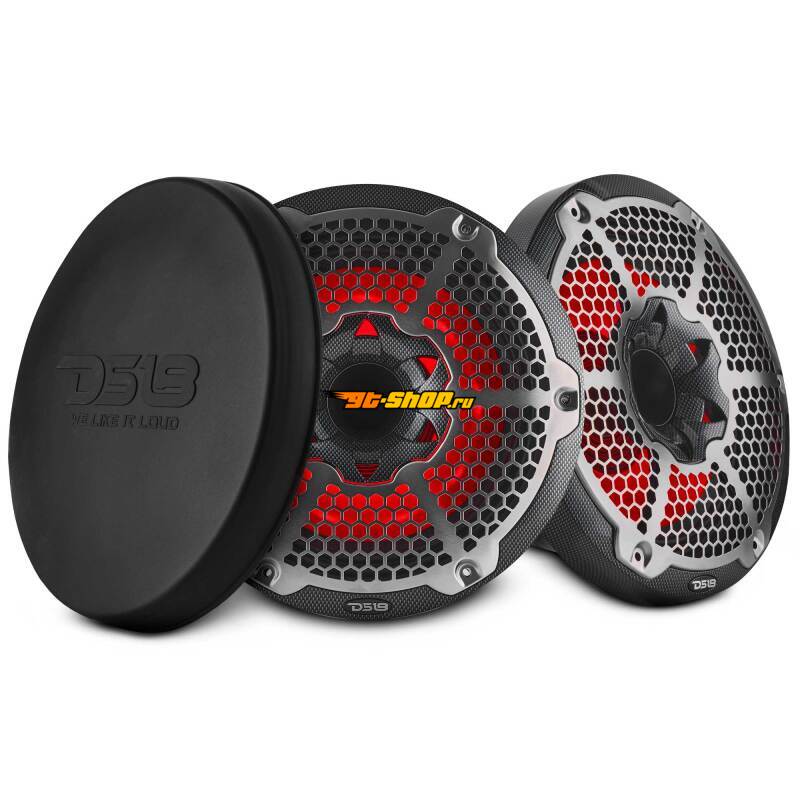 DS18 Hybrid Marine Speakers w/ Driver And RGB LED 10in 2-Way 450 Watts RMS 4 ohm Crbn Fiber w/ Cover