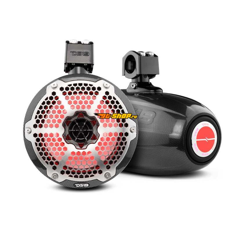 DS18 Marine And Psports Towers With Built In 8in 1in Driver 180 Watts RMS RGB LEDs Blk Crbn Fiber