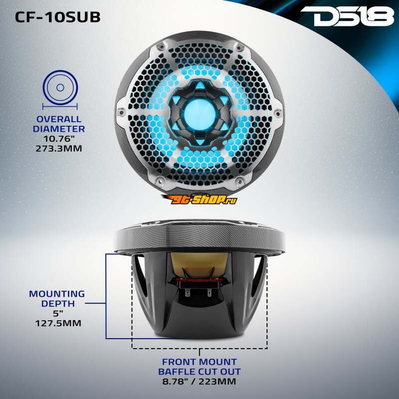 DS18 NXL Marine Subwoofer With RGB LEDs 10in 300 Watts RMS 4 ohm SVC Black Carbon Fiber
