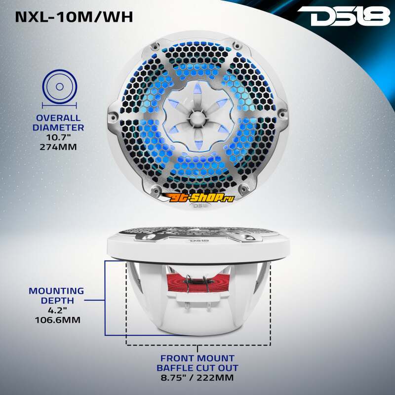 DS18 NXL-M Series Spkr w/ RGB LED Lights 10in 2-Way 200 Watts RMS 4 ohm Wht Grill Detached w/ Cover