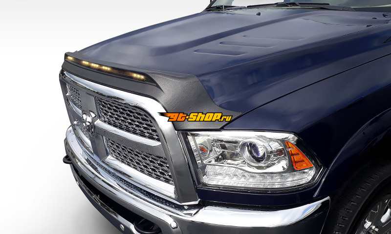 AVS 2009-2018 Dodge Ram 1500 (Excl Sport / Rebel) Aeroskin Low Profile Hood Shield w/ Lights - Black