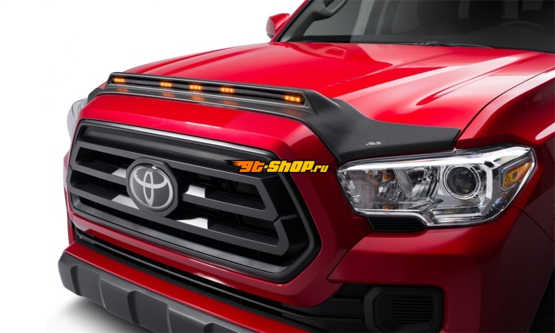 AVS 2016-2019 Toyota Tacoma Aeroskin Low Profile Hood Shield w/ Lights - Black